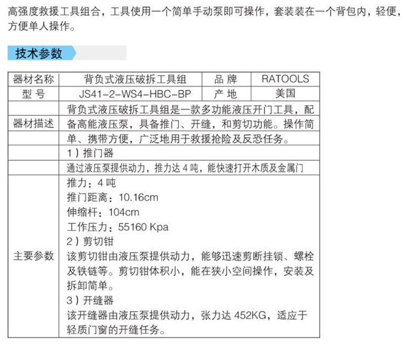美国背负式组合破拆套装